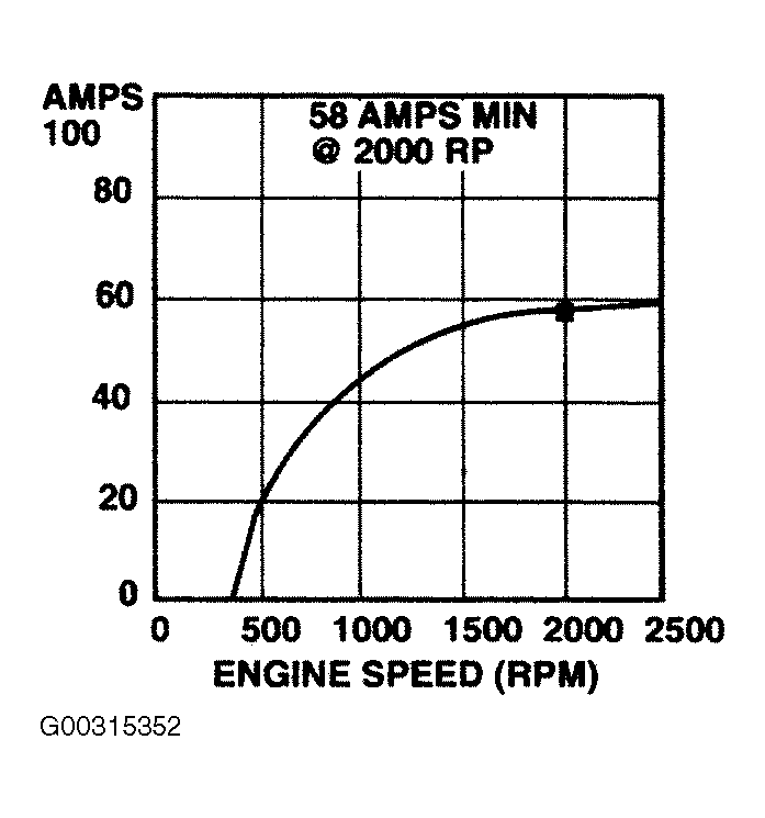 3. With engine running at 2000 RPM, monitor generator amperage output. See Fig 1 . If generator output is 58 amps or more at 2000 RPM, generator is operating normally. If generator output is not 58 amps at 2000 RPM, replace generator. See GENERATOR  under REMOVAL & INSTALLATION.