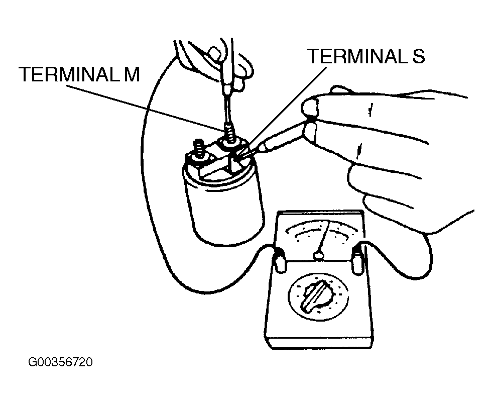1. Inspect for continuity between terminals (S) and (M) using an ohmmeter. If there is no continuity, replace the magnetic switch. See Fig 1 .