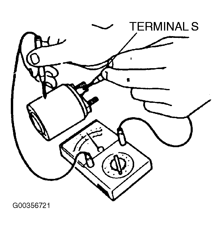2. Inspect for continuity between terminal (S) and the body using an ohmmeter. If there is no continuity, replace the magnetic switch. See Fig 2 .