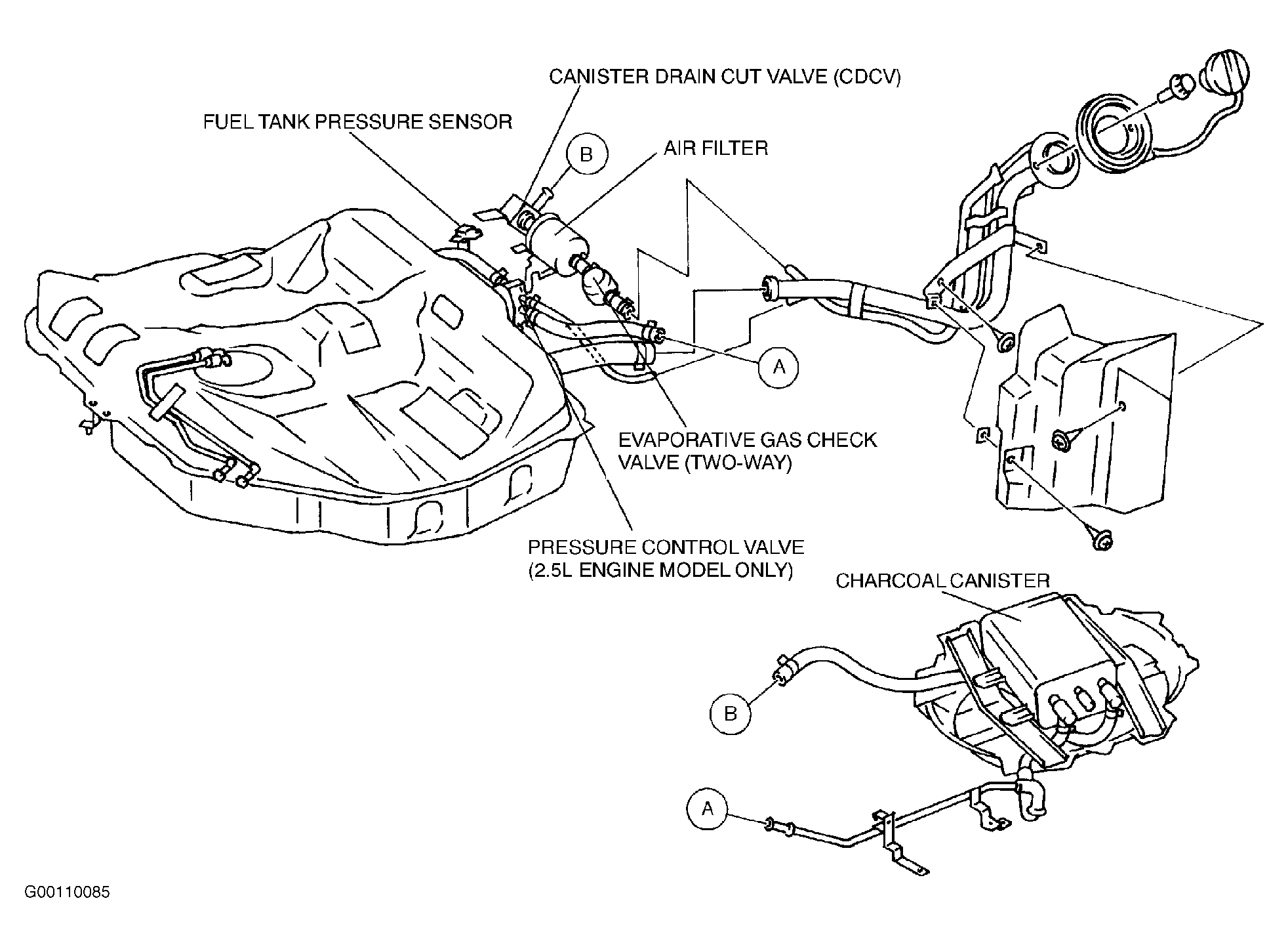 Home >> Mazda >> 2002 >> MPV ES >> Repair and Diagnosis >> Engine Performance >> System >> Engine Controls - System & Component Testing >> Emission Systems & Sub-Systems >> Fuel Evaporative System (Except MPV) >> System Inspection