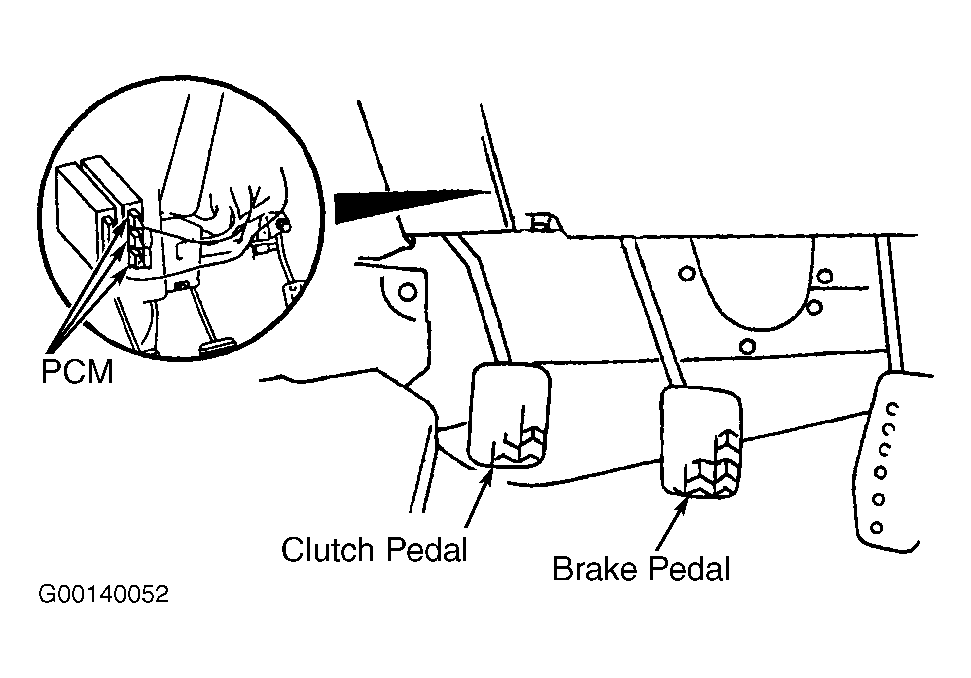 PCM is located above brake pedal. For PCM location and connector terminals identification. See Fig 1 and Fig 2 .