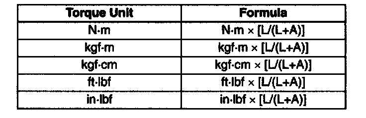 Torque Formulas^ When using a torque wrench-SST or equivalent combination, the written torque must be recalculated due to the extra length that the SST or equivalent adds to the torque wrench. Recalculate the torque by using the following formulas. Choose the formula that applies to you.
