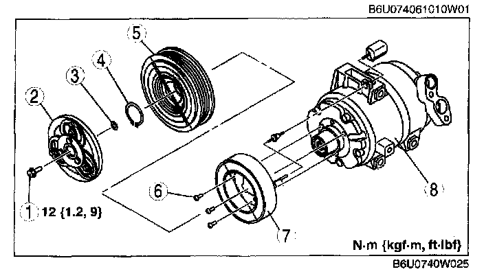 3. Adjust the magnetic clutch clearance. (See MAGNETIC CLUTCH ADJUSTMENT.)