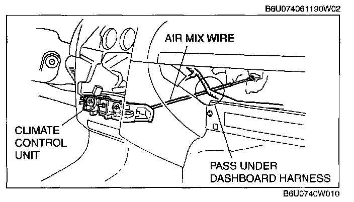 1. Pass air mix wire through the following routes then connect to A/C unit. (Manual air conditioner)