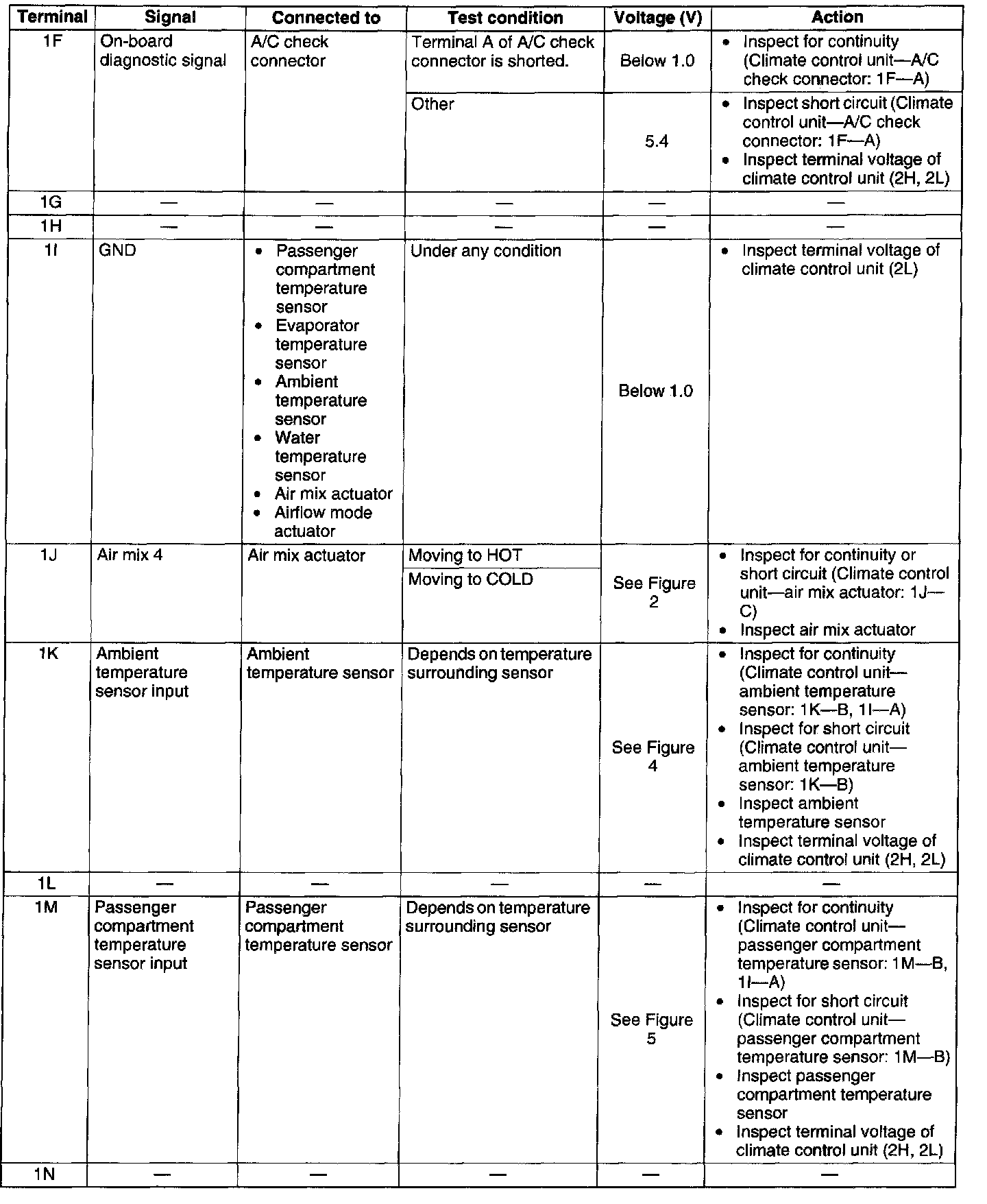 Terminal Voltage List (Reference) - (Terminal 1F - 1N):