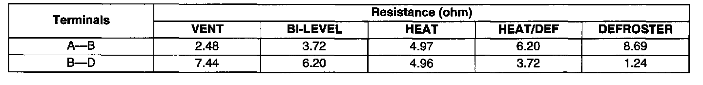 3. Verify that the resistance between the terminals of the mode switch is as shown in the table.