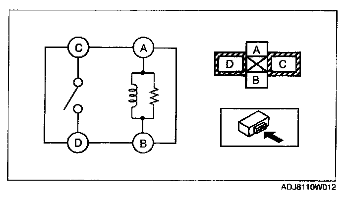 2. Inspect for continuity between the relay terminals using an ohmmeter.