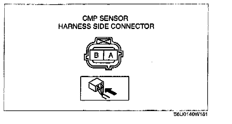 2. Measure the resistance between CMP sensor terminals A and B using an ohmmeter.