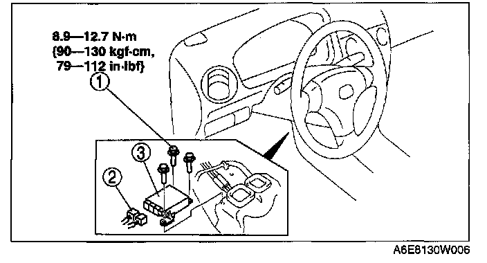SAS CONTROL MODULE REMOVAL/INSTALLATIONWARNING: Handling the SAS control module improperly can accidentally deploy the air bag modules and pre-tensioner seat belt, which may seriously injure you. Read AIR BAG SYSTEM SERVICE WARNINGS before handling the SAS control module. (See AIR BAG SYSTEM SERVICE WARNINGS.)