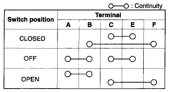 Inspect for continuity between the power window subswitch terminals.