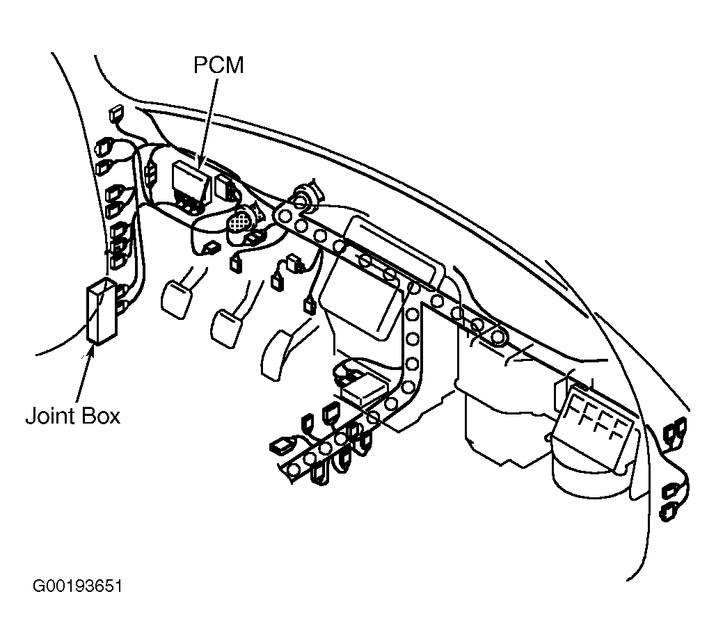 PCM is located under instrument panel behind instrument cluster. See Fig 1. For PCM removal and installation, see POWERTRAIN CONTROL MODULE under COMPUTERIZED ENGINE CONTROLS in REMOVAL & INSTALLATION article.
