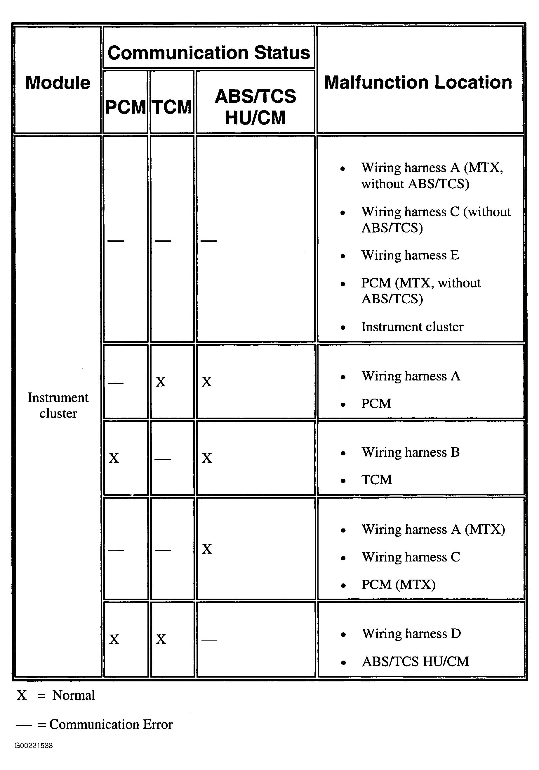 Fig 1: Instrument Cluster Malfunction Locator Table