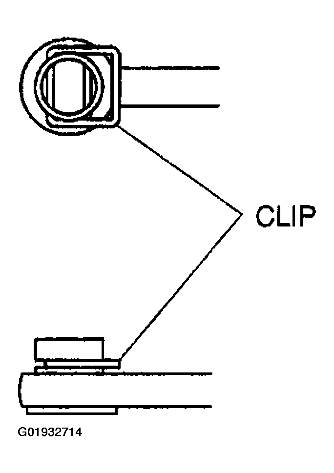 - Install the selector lever to the manual shaft lever with the clip side of the selector cable end facing the front of the vehicle.