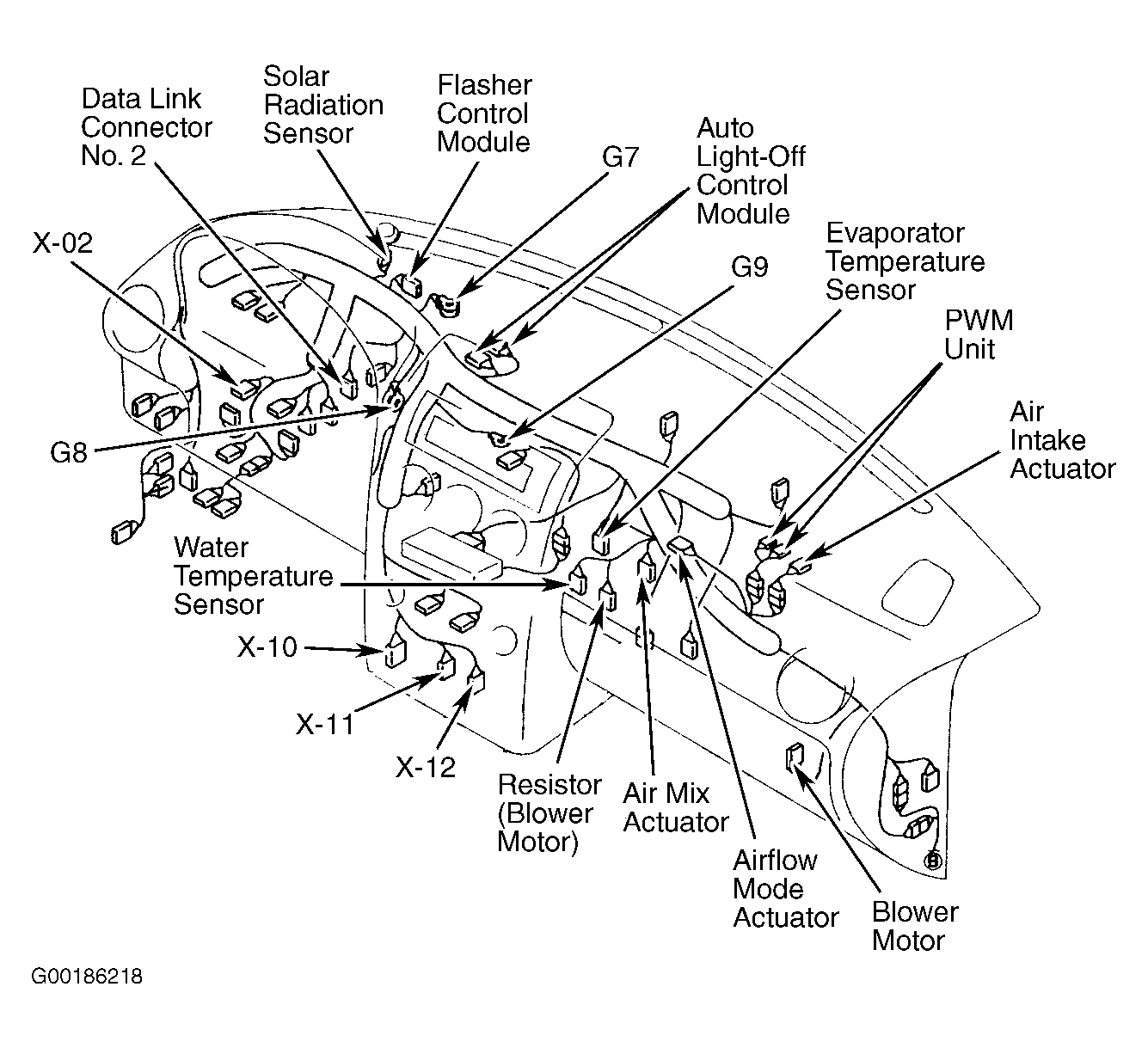 | Auto Light-Off Control Module | Behind left side of dash. See Figure. |