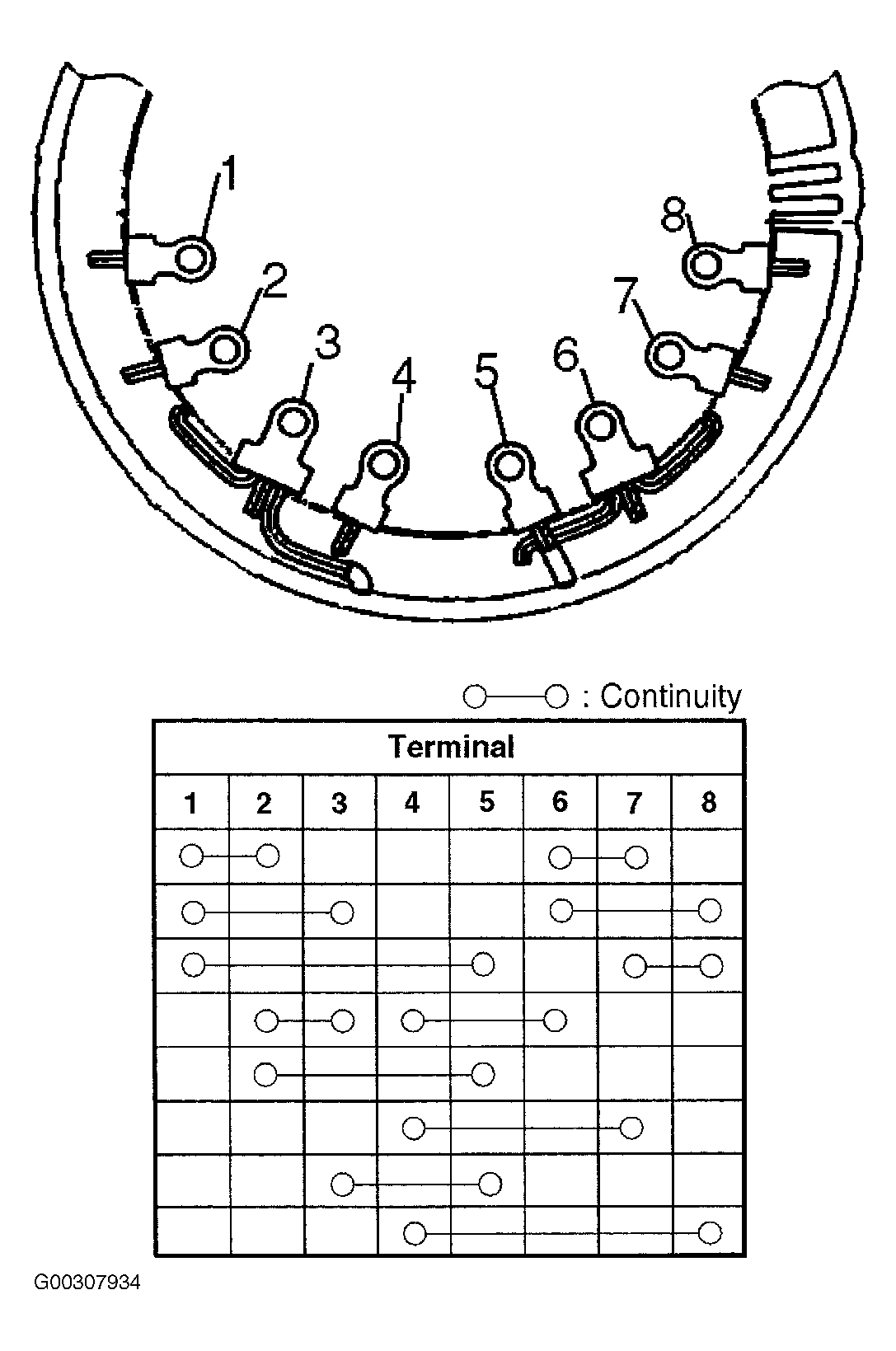 Using DVOM, check for continuity between the stator coil leads. See Fig 1. If continuity exists, go to next step. If continuity does not exist, replace stator. Verify that there is no continuity between the stator coil leads and the core. If continuity exists, replace the stator coil. See Fig 1.