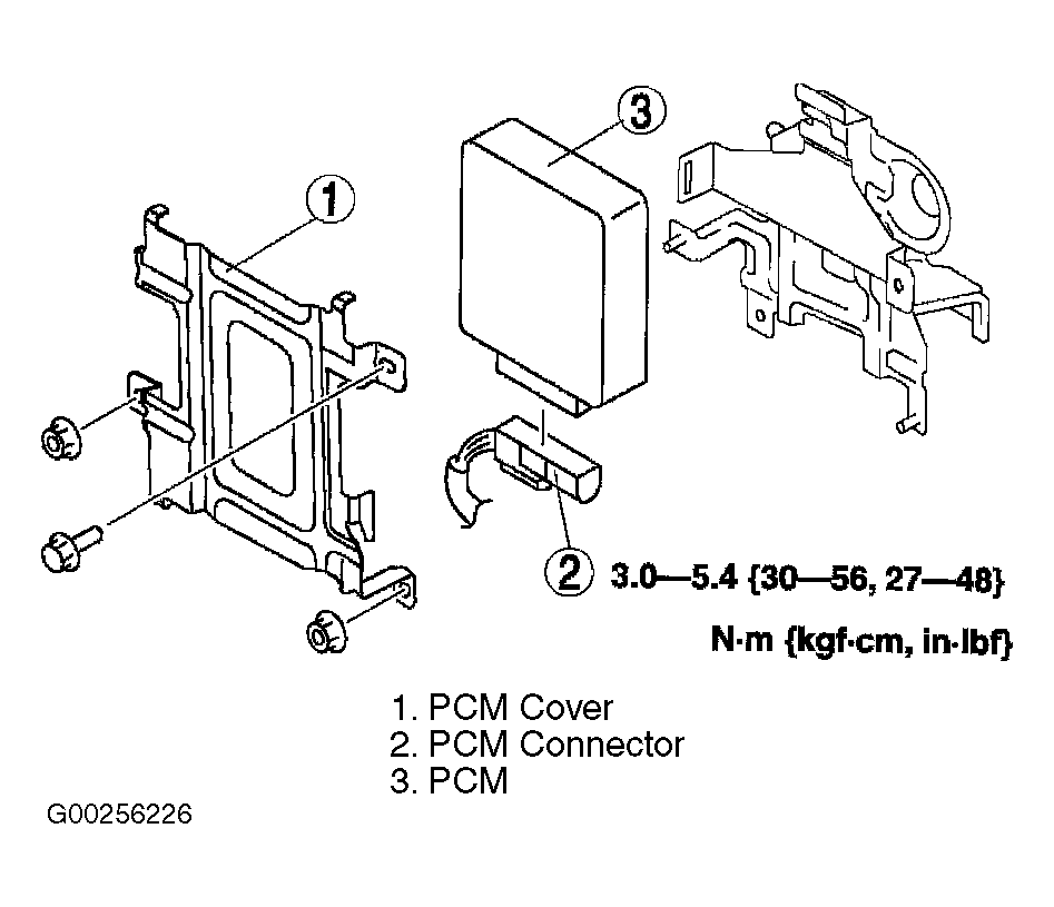 - To install, reverse removal procedure.NOTE: When replacing the PCM, setup the WDS tester and perform PCM configuration. See POWERTRAIN CONTROL MODULE CONFIGURATION (MAZDA6) POWERTRAIN CONTROL MODULE PROGRAMMING.