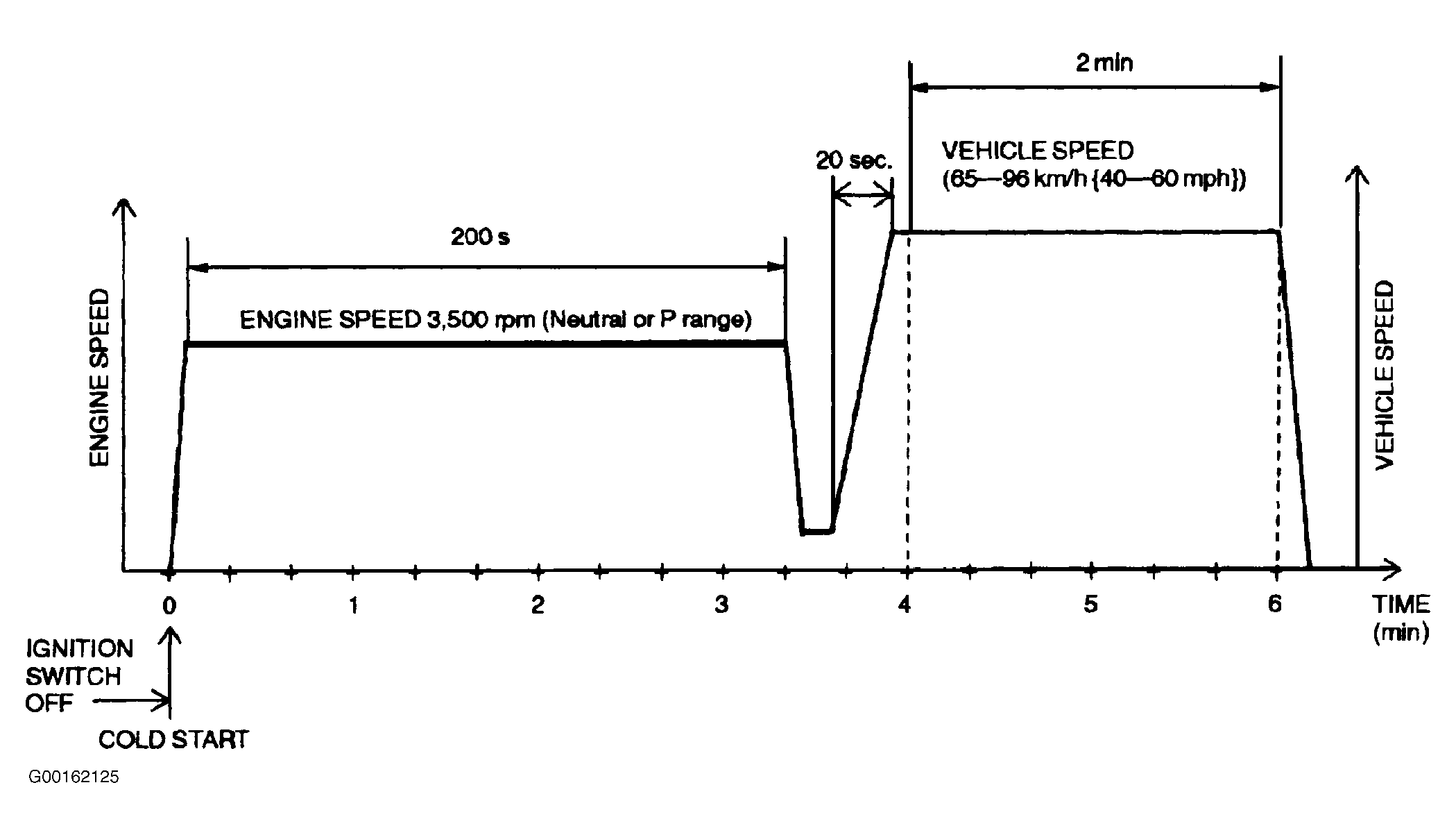 - Start engine and race at 3500 RPM until it reaches normal operating temperature. Drive vehicle as shown in graph. See Fig 1.