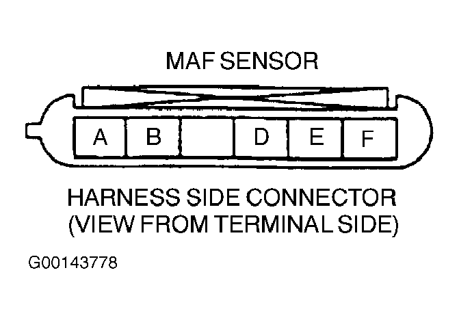 - MAF/IAT sensor 6-pin harness connector terminal "F" (Violet wire) and ground.