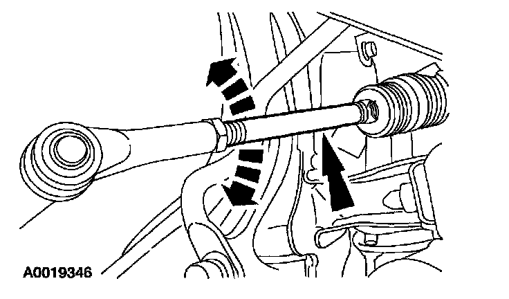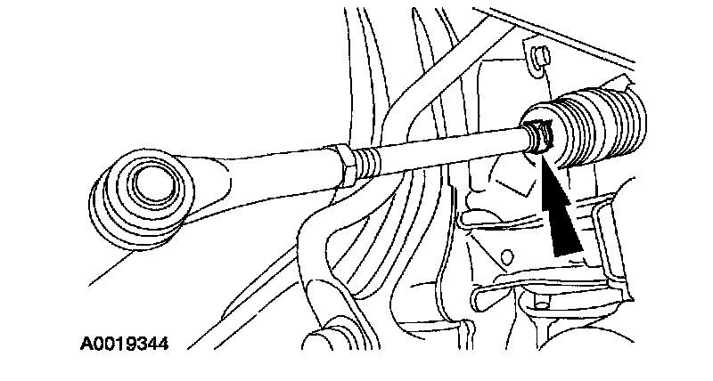 ^ Do not allow the steering gear bellows to twist when the front wheel spindle tie rod is rotated.