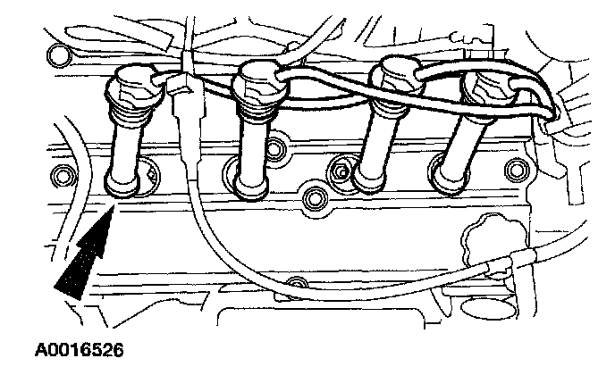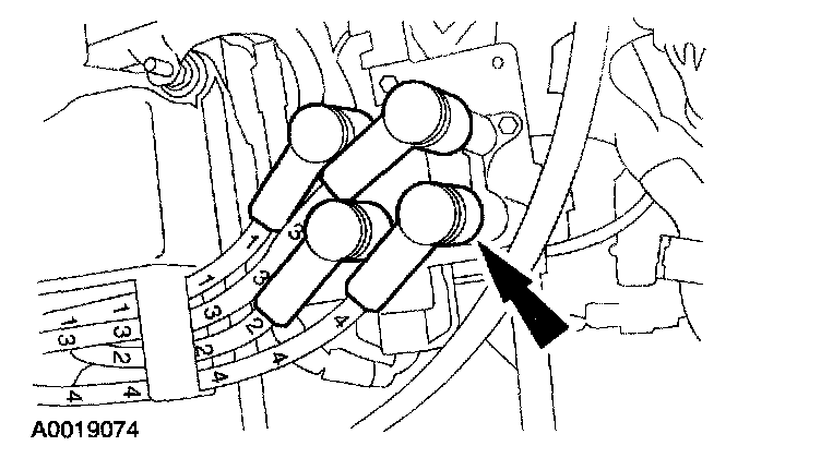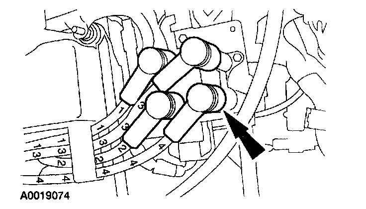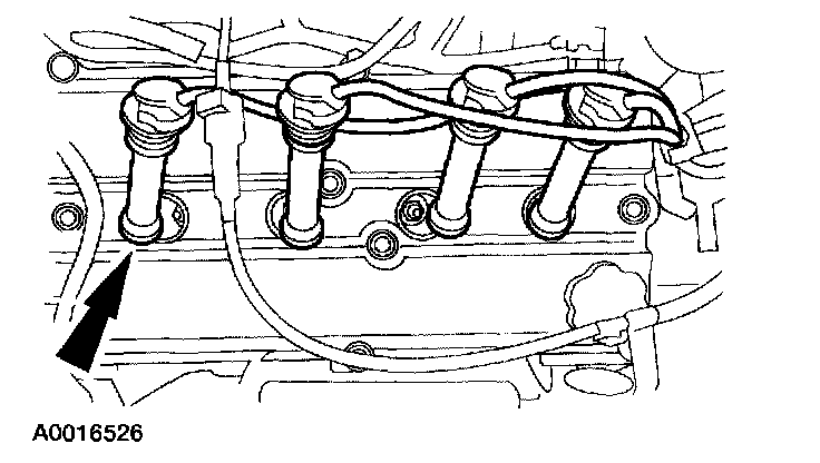 CAUTION: Correct installation of the ignition wires is critical to engine operation. If one spark plug wire is not correctly installed at either the spark plug or the ignition coil, both spark plugs connected to the ignition coil may not fire under load.