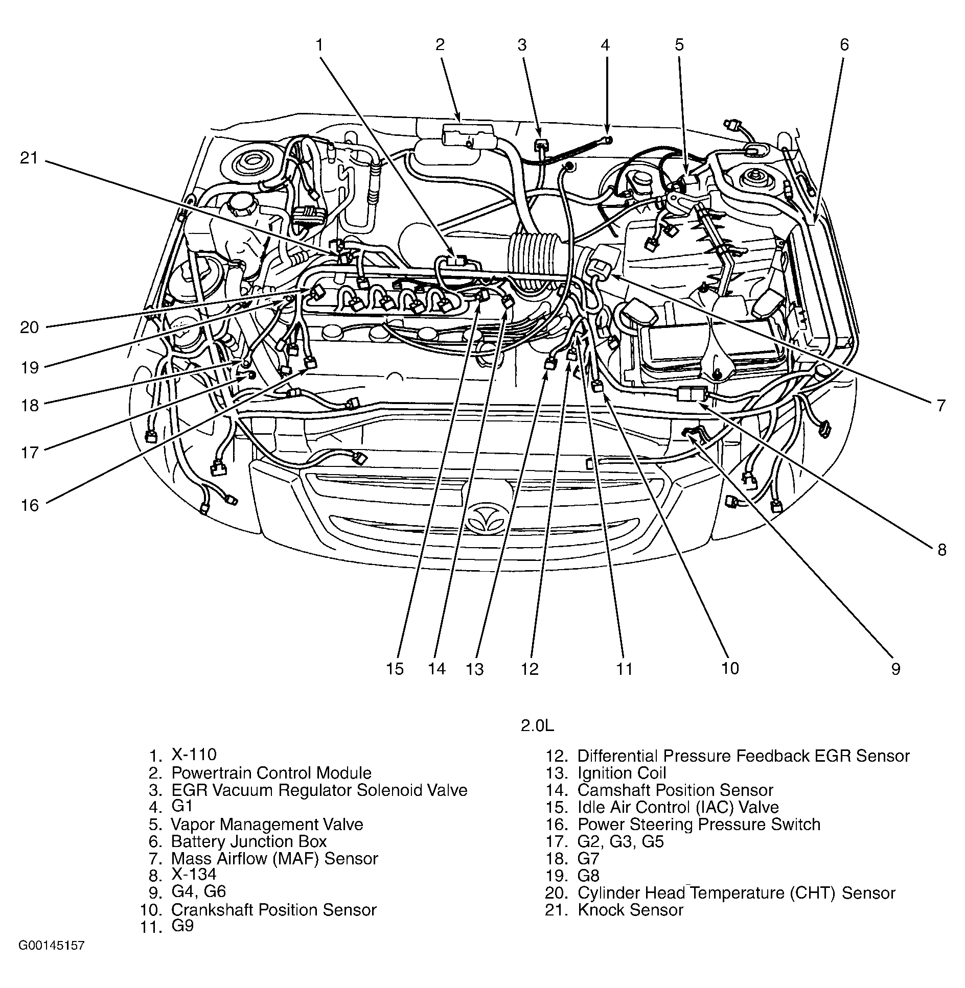| Powertrain Control Module (2.0L) | In recess on upper center of firewall. See Figure. |