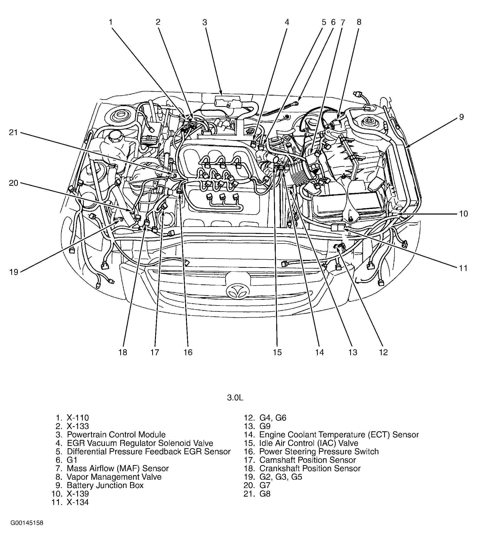 | Powertrain Control Module (3.0L) | In recess on upper center of firewall. See Figure. |