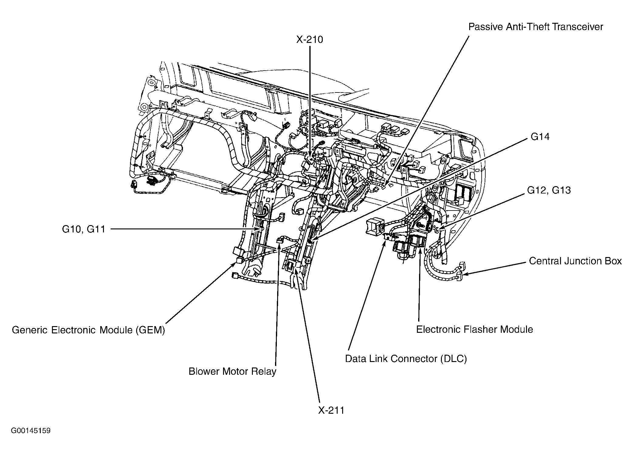 | Generic Electronic Module (GEM) | Behind lower center of dash. See Figure. |