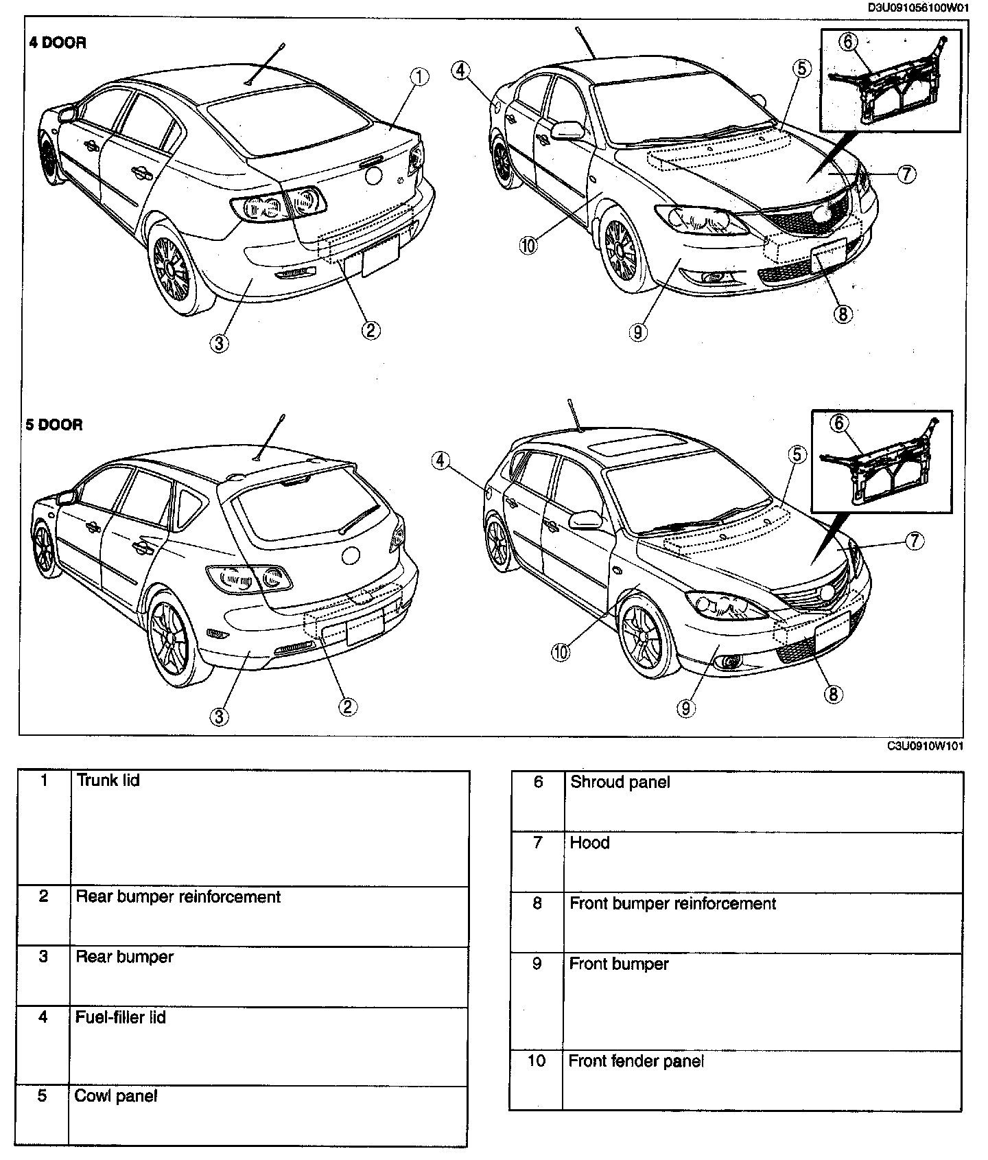 Body Panels Location Index: