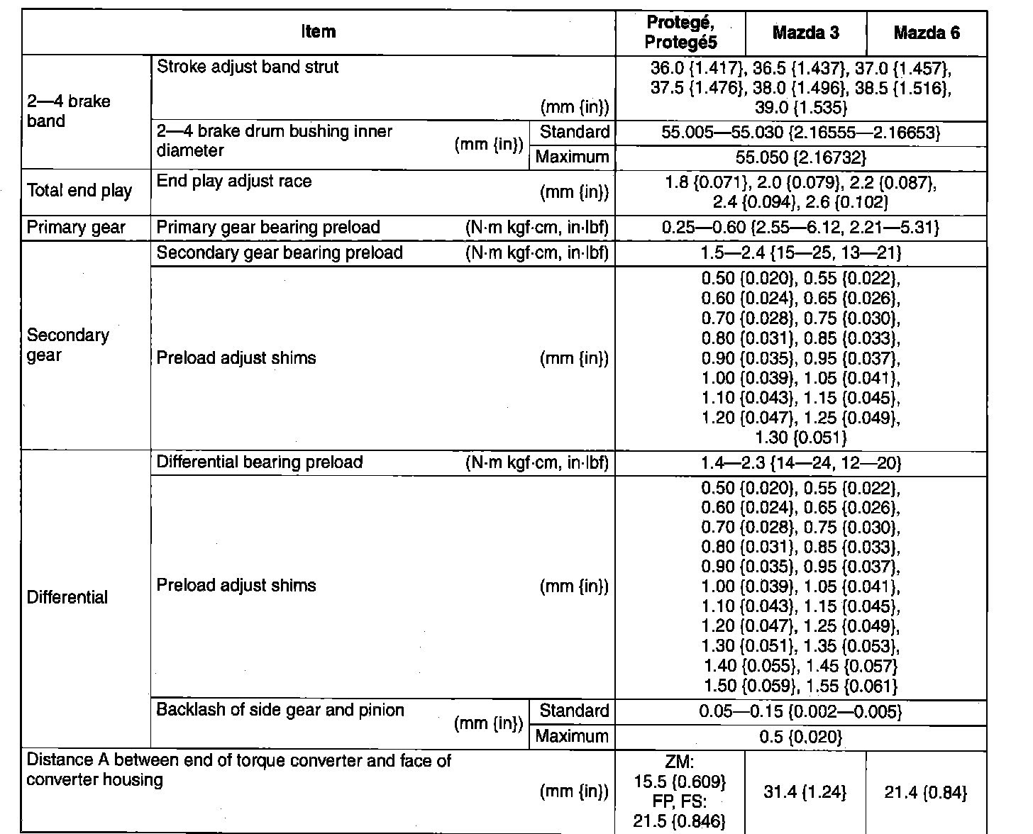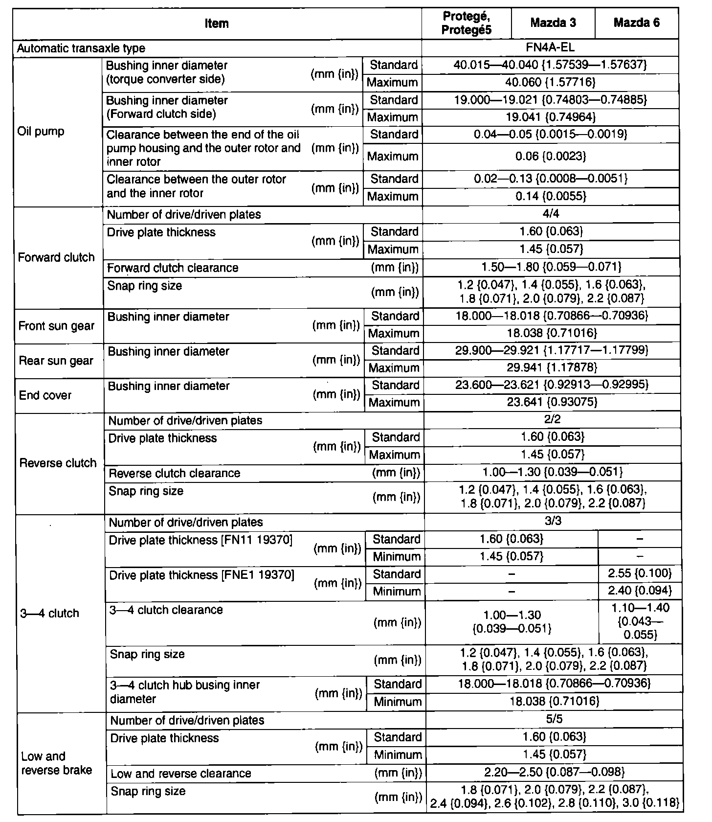 TRANSMISSION/TRANSAXLE TECHNICAL DATA