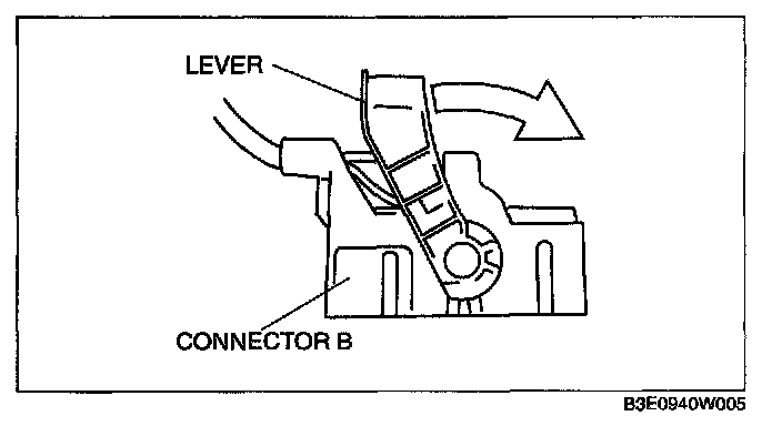 1. Rotate the lever in the direction of the arrow and remove connector B.