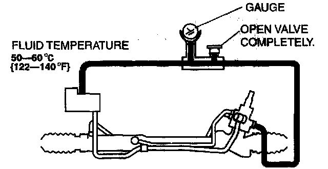 9. Turn the steering wheel fully to the left and right, then measure the fluid pressure generated at the gear housing.