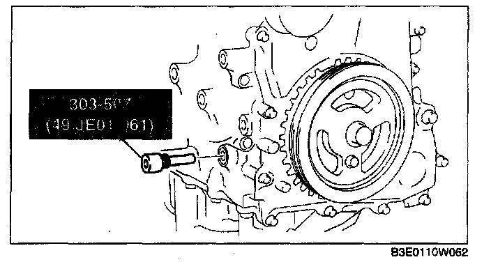 2. Rotate the crankshaft pulley clockwise until the crank weight contacts the SST so that cylinder No.1 is at TDC.