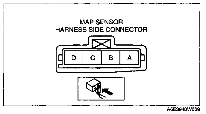 1. Remove the MAP sensor with the connector still connected. (See MANIFOLD ABSOLUTE PRESSURE (MAP) SENSOR REMOVAL/INSTALLATION.)