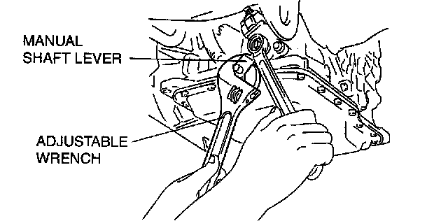 Caution: Do not use an impact wrench. Hold the manual shaft lever when removing the manual shaft nut, or the transaxle may be damaged.