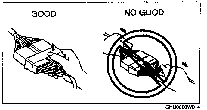 - When disconnecting connector, grasp the connectors, not the wires.