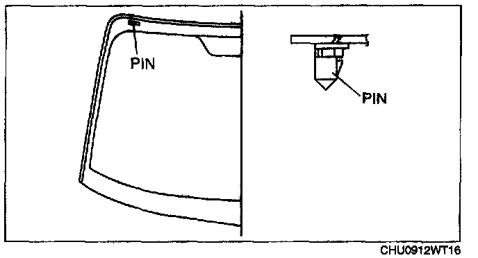 7. Mark the seating positions of the pins and remove the pins from the windshield.