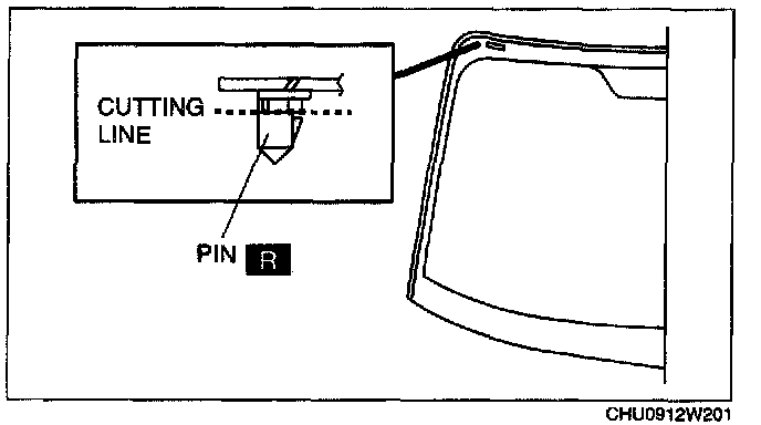 NOTE: As the upper part of the pin adheres to the sealant, cut it using the SST (piano wire).