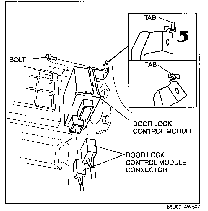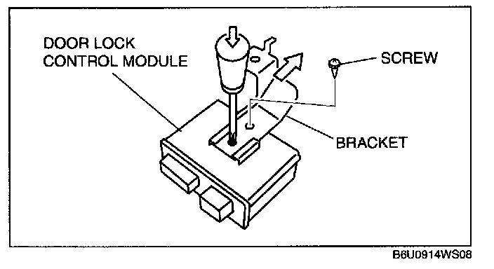 NOTE: The screw which fixes the door lock control module and bracket is for a body ground connection. Be sure to secure the screw when installing.