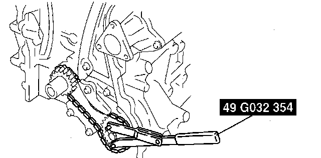 3. Hold the chain tensioner piston with a 1.5 mm {0.06 inch} wire or paper clip.