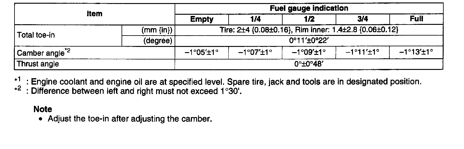 REAR WHEEL ALIGNMENTSpecification (Unloaded)*1