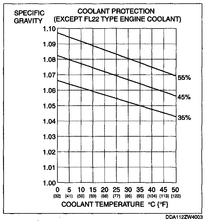2. Determine the engine coolant protection by referring to the graph shown. If the engine coolant protection is not proper, add water or engine coolant.