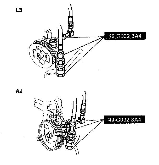 ^ If the steering wheel is kept in the fully turned position for more than 5 seconds, the fluid temperature will rise excessively and adversely affect the oil pump.