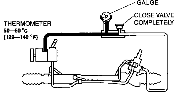 ^ If the valve is left closed for more than 5 seconds, the fluid temperature will rise excessively and adversely affect the oil pump.