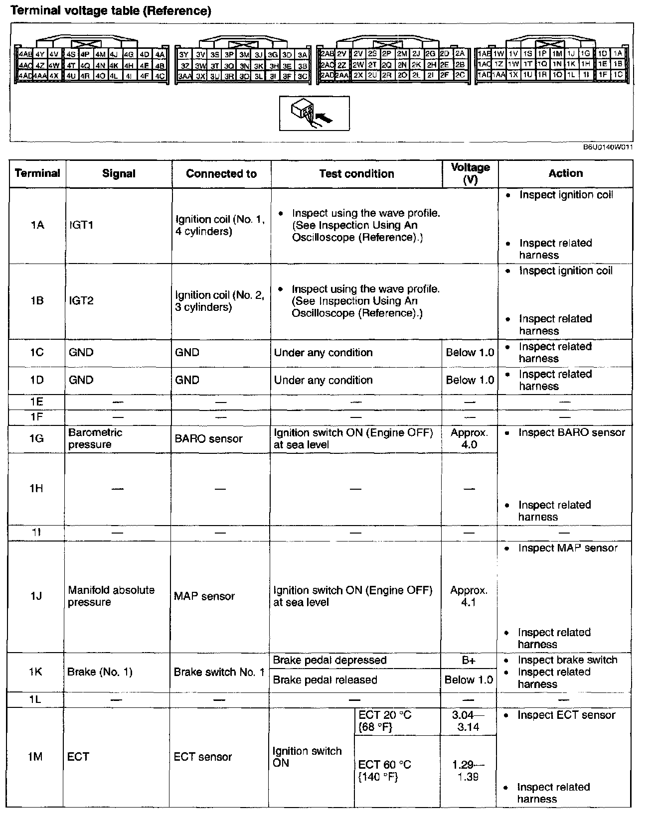 Terminal Voltage Table (Reference) - Terminals (1A - 1M):