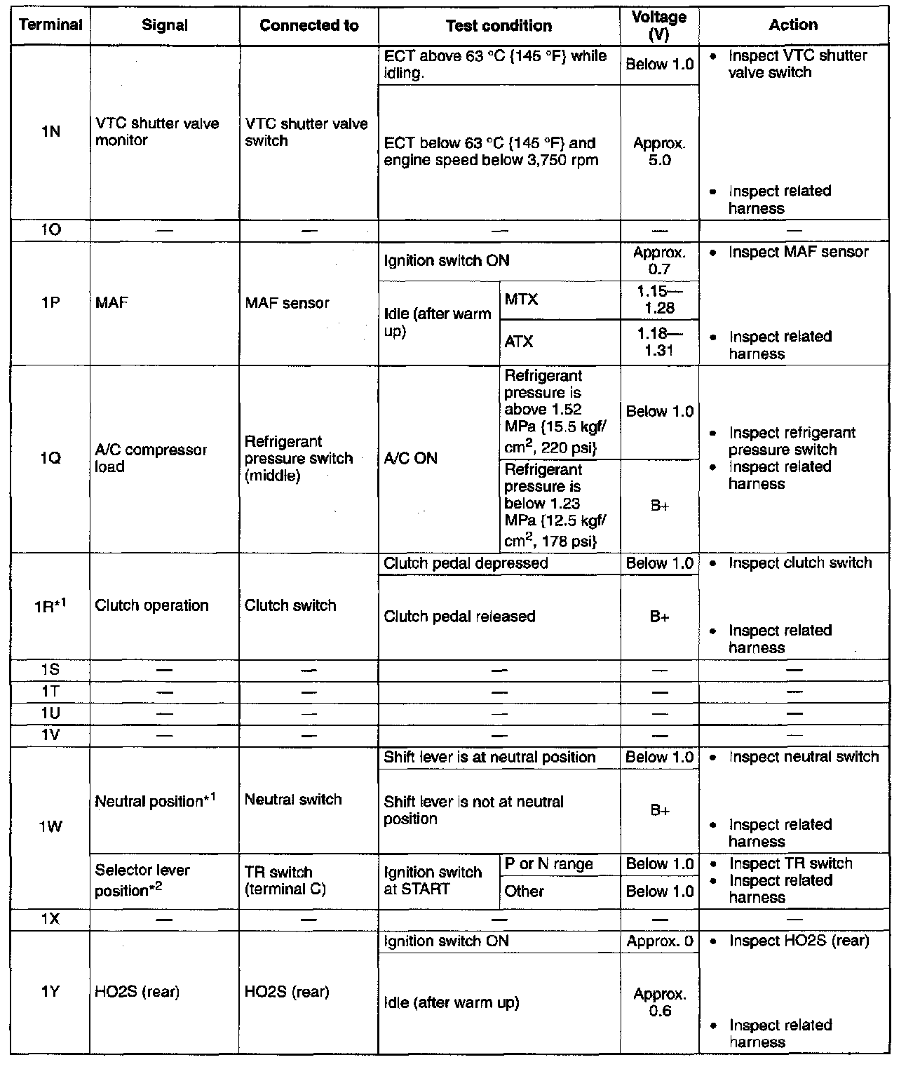 Terminal Voltage Table (Reference) - Terminals (2R - 3I):