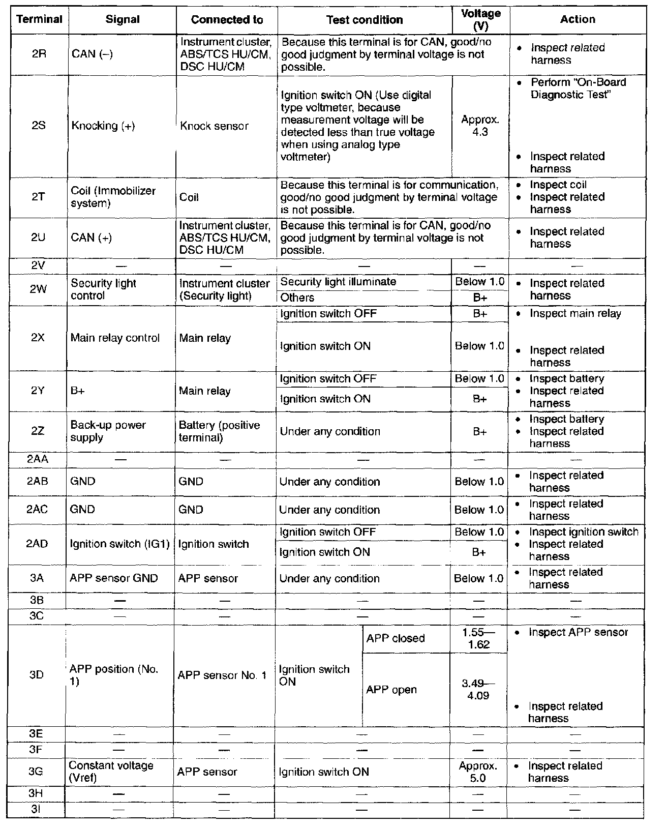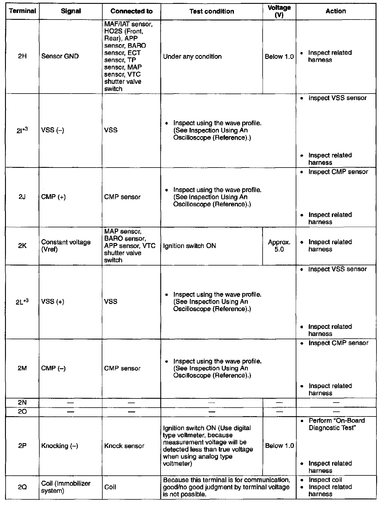 Terminal Voltage Table (Reference) - Terminals (2H - 2Q):