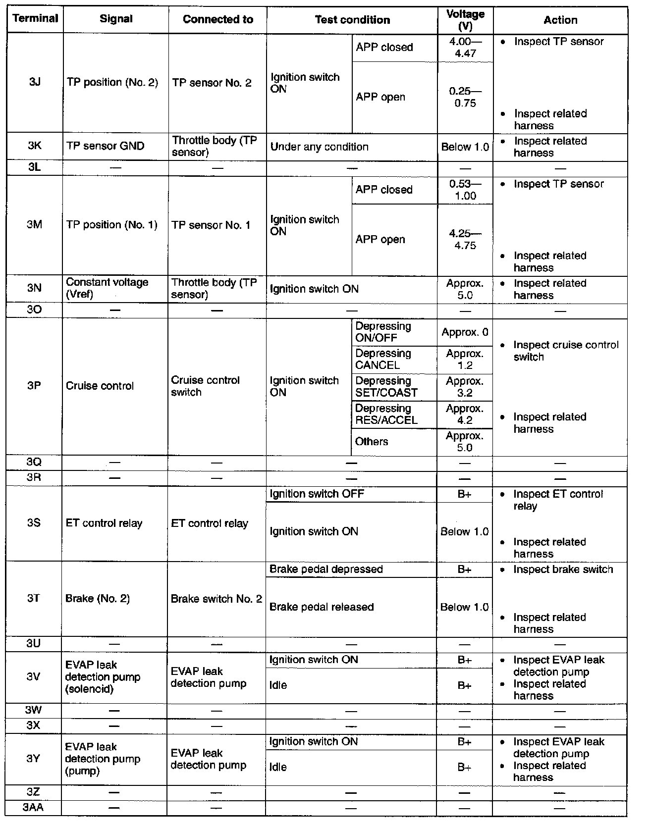 Terminal Voltage Table (Reference) - Terminals (3J - 3AA):