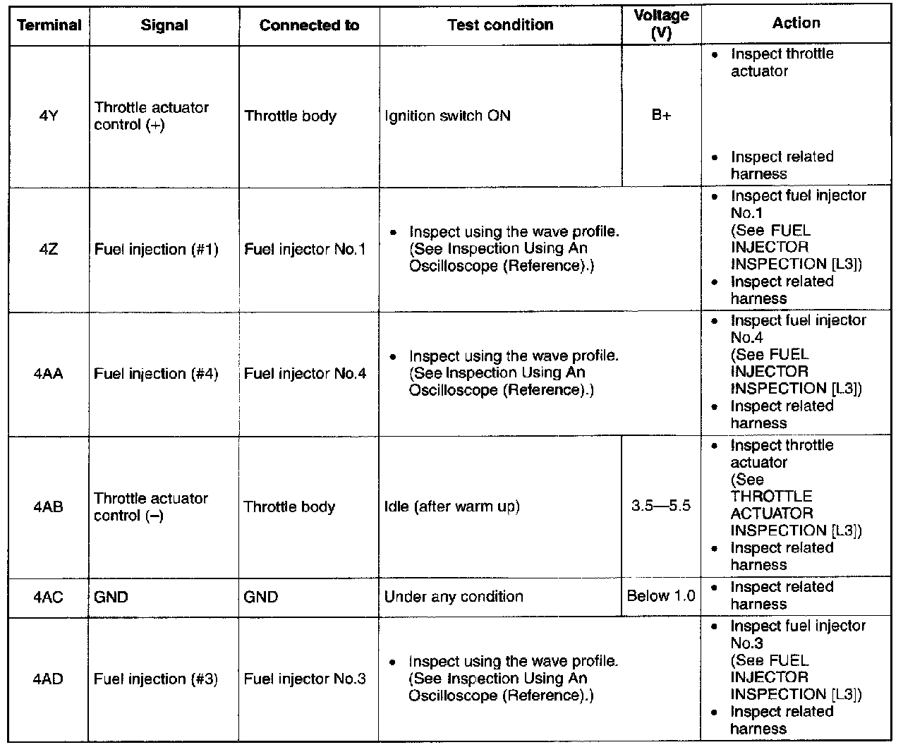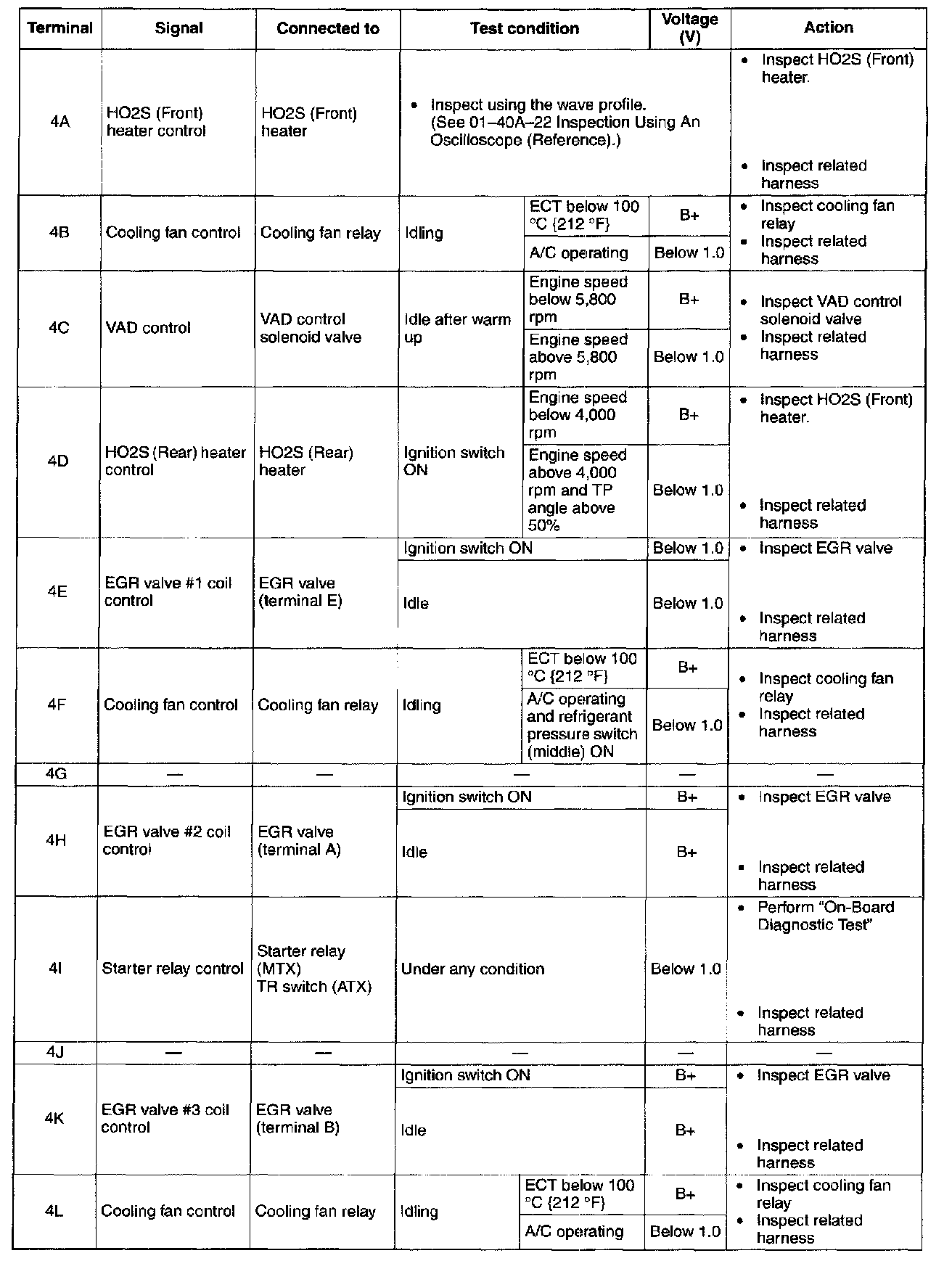 Terminal Voltage Table (Reference) - Terminals (4A - 4L):