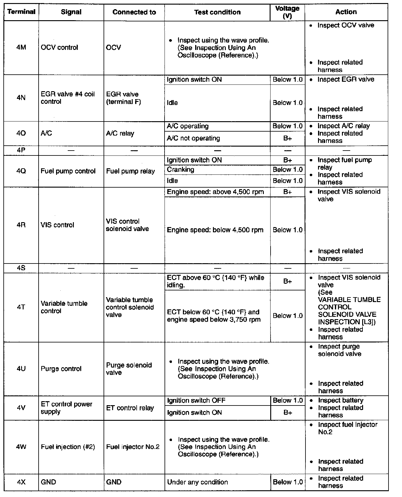 Terminal Voltage Table (Reference) - Terminals (4M - 4X):