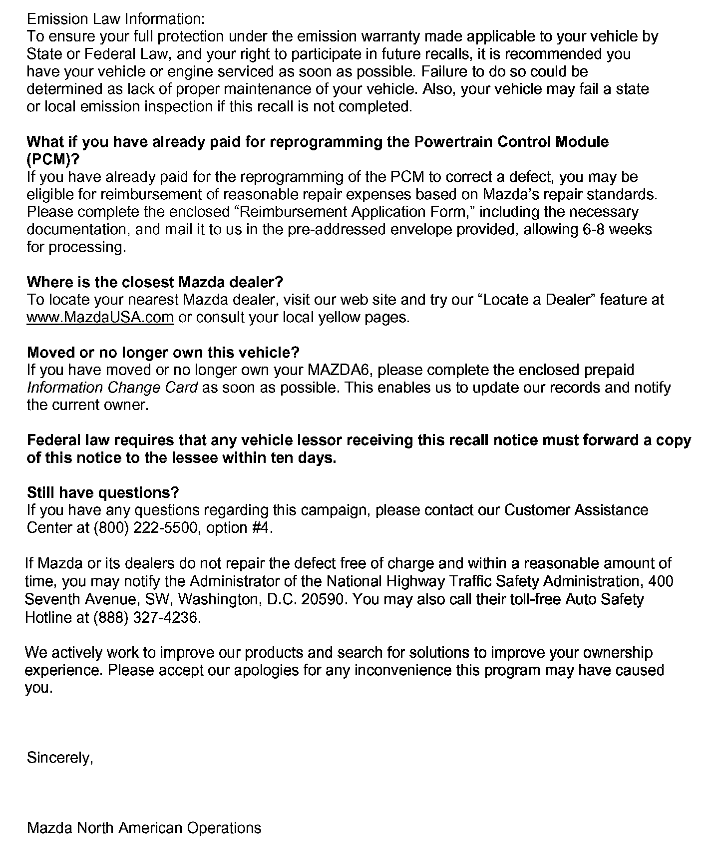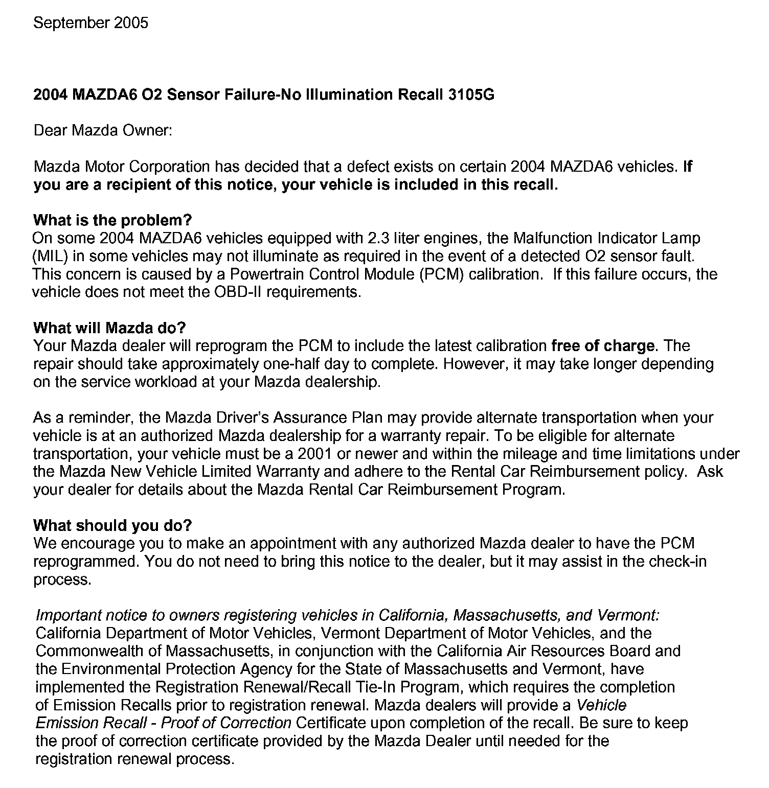Recall - PCM/TCM Reprogramming for O2 Sensor Fault